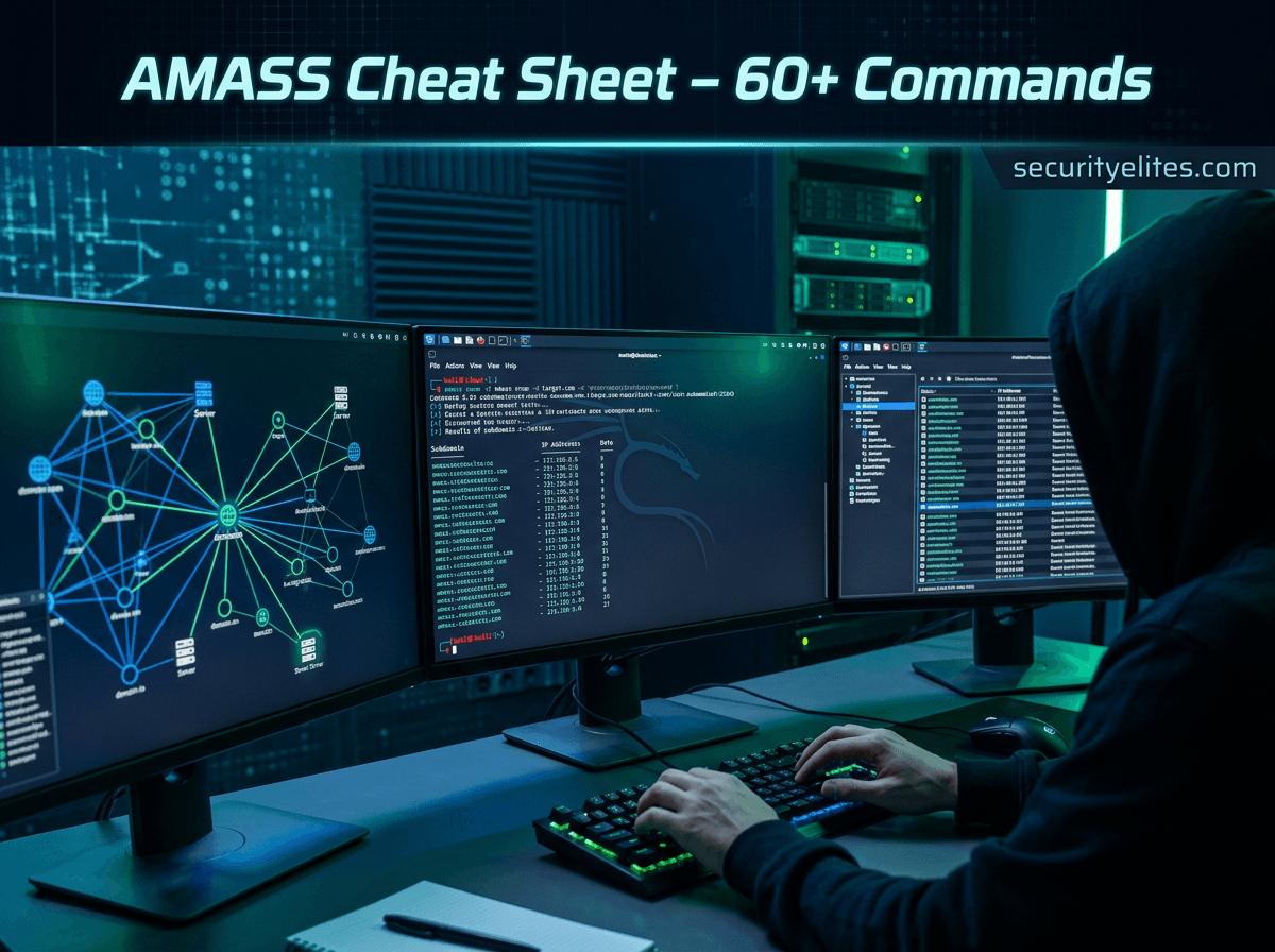 The following Amass Cheat Sheet commands are essential for beginners learning reconnaissance and domain enumeration.
