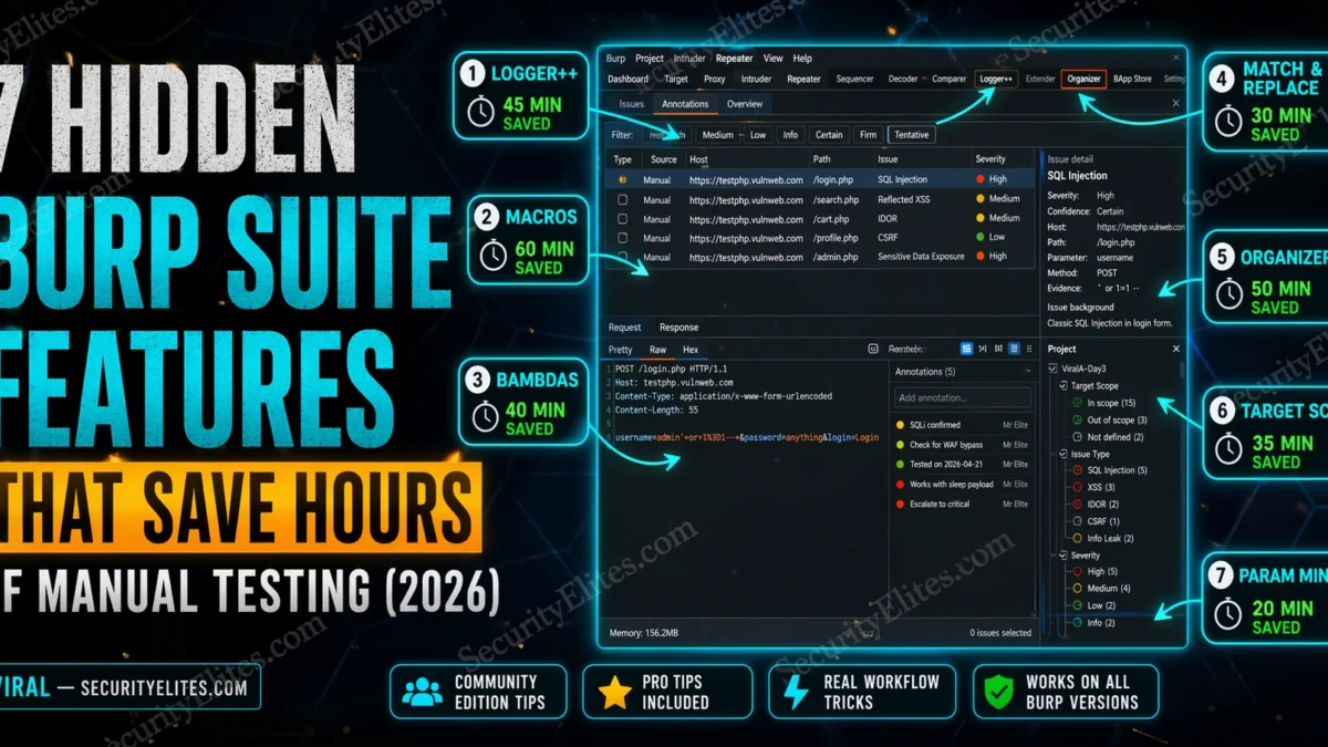 I’ve been testing web applications with Burp professionally for years. These seven Burp suite hidden features cut hours from every assessment. Some are built-in, some are extensions. All of them are free. All of them work in Community Edition.