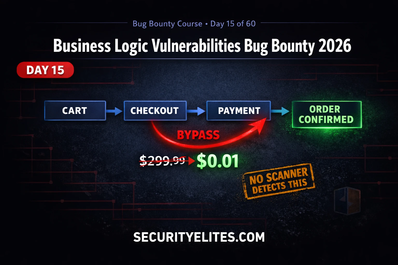 In Day 14 we exploited OS command injection — a vulnerability that requires a technical payload to trigger. Business logic vulnerabilities require no payload at all. They are exploited using the application’s own intended features, used in ways the developer did not anticipate. That distinction is exactly why they are both difficult to find and difficult for developers to fix without understanding their own system’s design. The 60-Day Bug Bounty Mastery Course covers them here because the mindset shift required is foundational to everything in the advanced chapters.