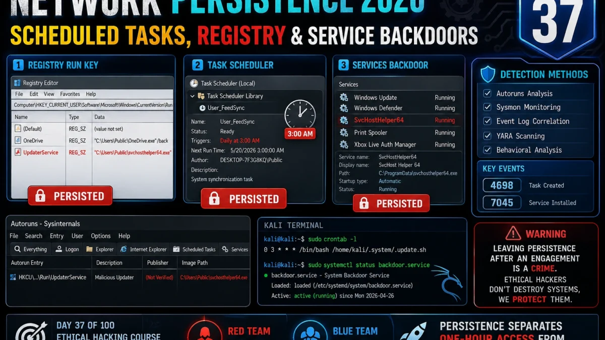 📸 Screenshot your hunt phase output showing all 4 persistence entries. Share in #ethical-hacking. Tag #Day37