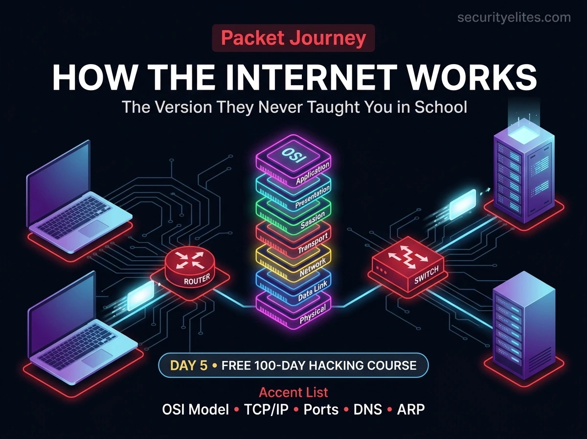 Let’s trace exactly what happens when you type https://securityelites.com into your browser and press Enter. Every concept we covered today appears in this journey — this is the unified picture.