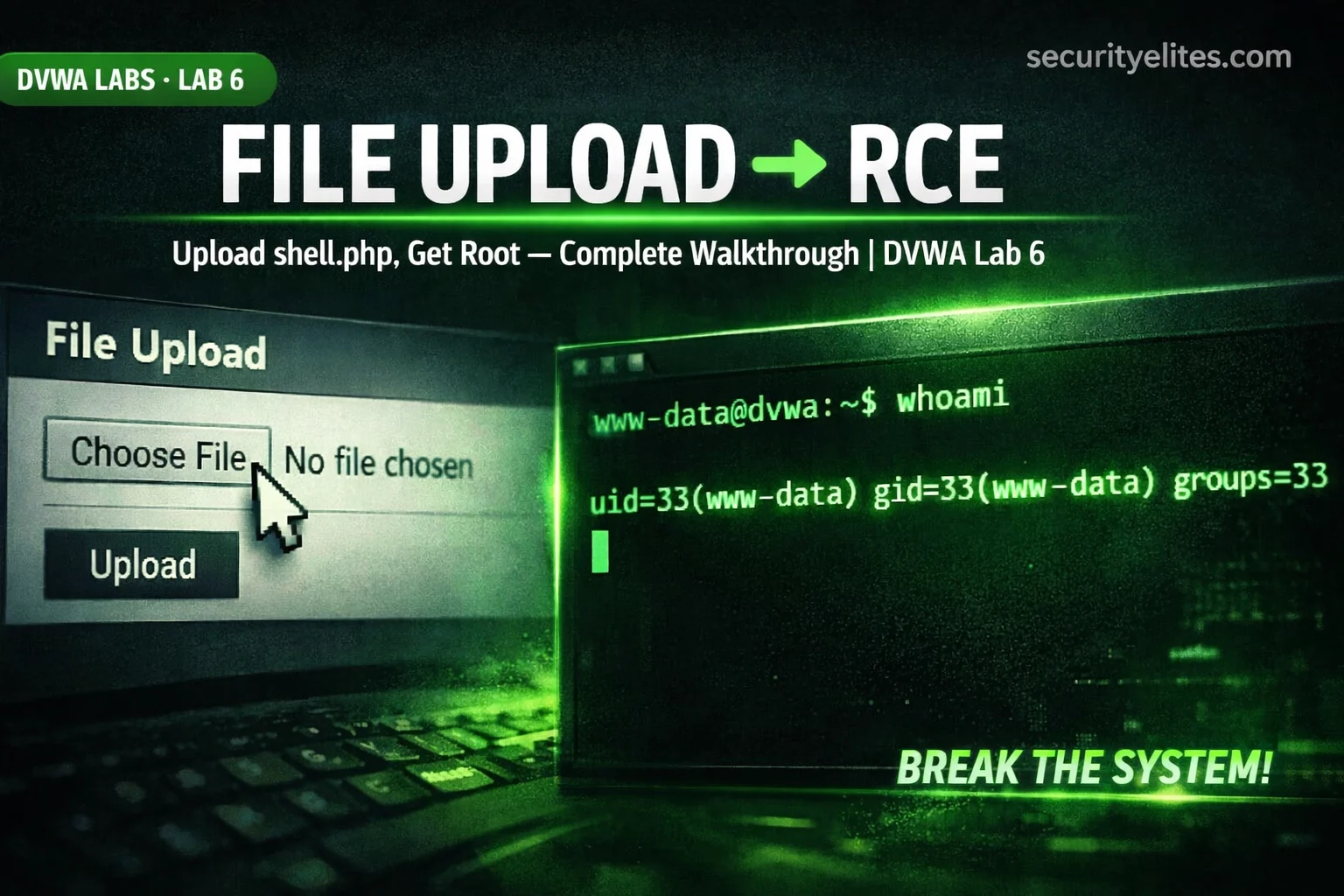 File upload vulnerabilities are OWASP’s most impactful web attack class — and this DVWA file upload lab shows exactly why every layer of validation matters, why client-side checks are useless, and how magic bytes bypass server-side content inspection. Lab 6 is where uploads become shells and shells becomes a key and key is everything that hacker needs.