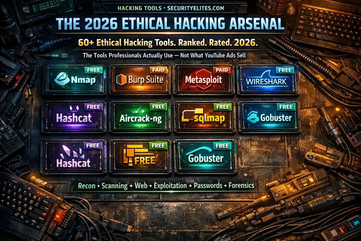 This is the honest version — 60+ tools across 10 categories, each rated by how often they appear in real professional work, labelled free or paid, and linked to deep-dive tutorials where SecurityElites.com has built them. No affiliate relationships. No sponsored placements. Just the tools that actually matter.