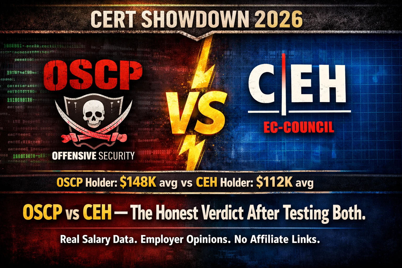 The OSCP vs CEH 2026 debate is the most argued topic in cybersecurity certification forums. Both camps are loud. Most comparisons are written by people selling one or the other. This guide has no affiliate links to either — just real salary data, honest difficulty assessments, real employer opinions from hiring managers, and the straight verdict on which one actually moves your career forward in 2026.