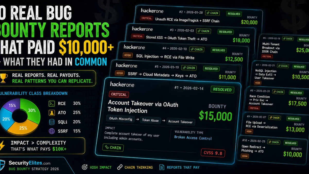 The vulnerability classes that dominate high payouts, the attack chain thinking that turns Low findings into Critical reports, report writing that gets your finding triaged at the right severity, and program selection that ensures your skills can actually pay off. The next article covers command injection payloads that bypass WAFs — a finding class that appears frequently in high-payout reports when the WAF bypass is included in the chain demonstration.